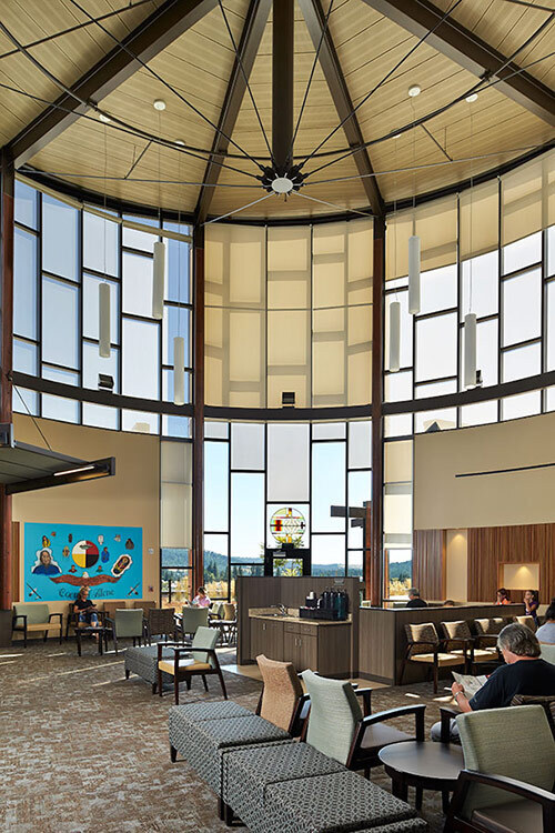 The 50,000-square-foot Marimn Health in Plummer, Idaho, is located on the Coeur d’Alene Indian Reservation. The center serves both tribal members and local community members, which is a unique model for a Tribal-owned community health center.