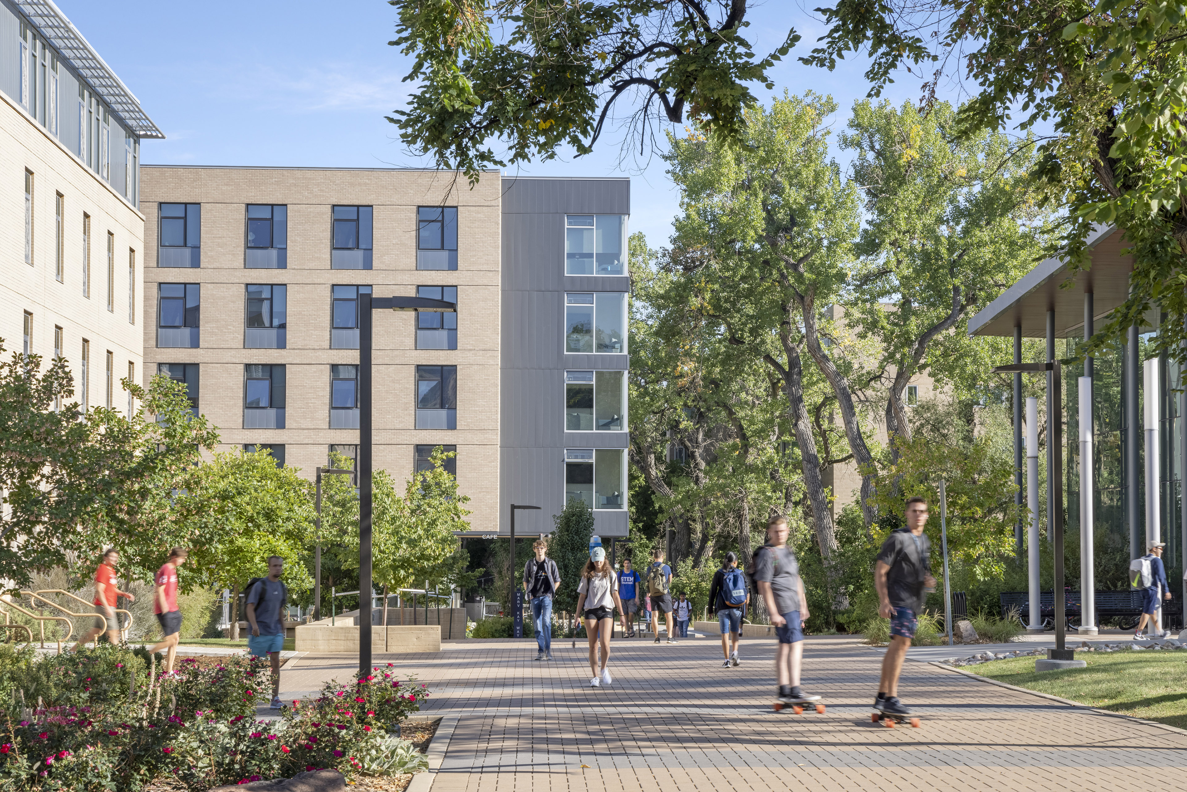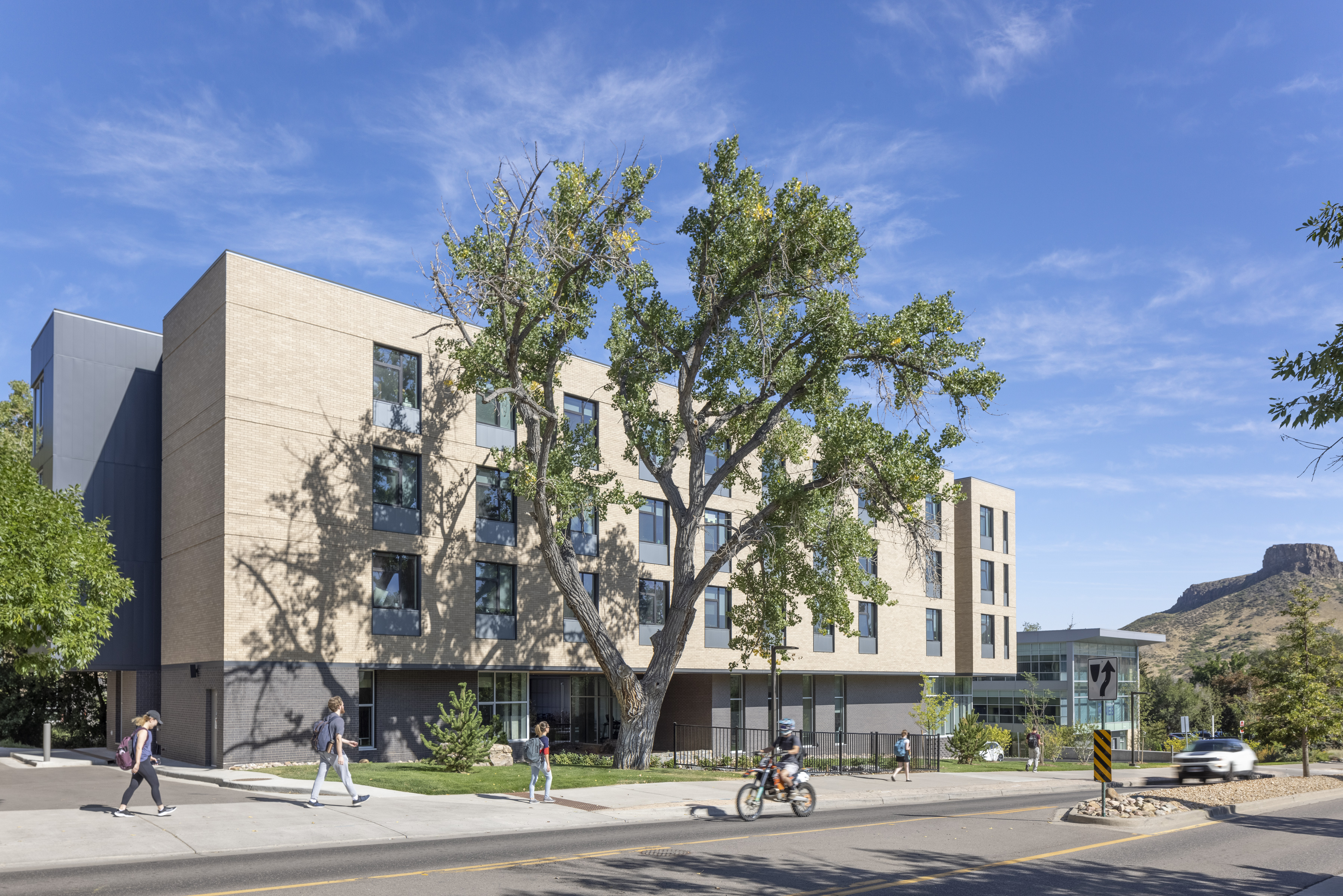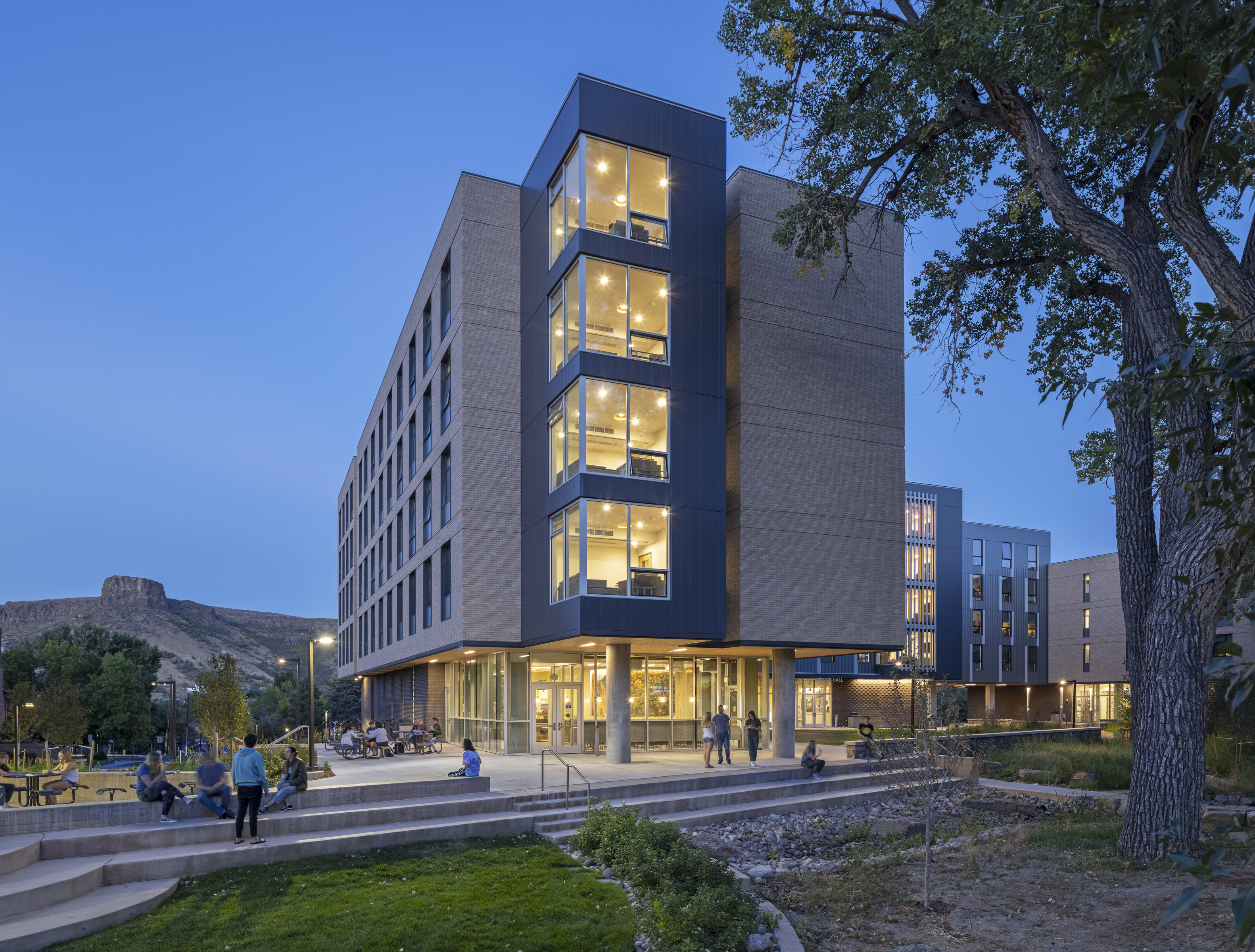 Spruce Hall is a new freshman residence facility for 420 students on the Colorado School of Mines campus in Golden, Colorado. The hall initiates the first phase of a major student housing master plan developed by NAC Architecture and AMD Architects for the nationally acclaimed engineering university. Built to conserve resources and lessen environmental impact, the hall is a sustainable structure that is on target for LEED (Leadership in Energy and Environmental Design) Gold certification. The building is also unique in that it is specifically designed to address the school’s STEM culture by meeting the needs of introverted students.