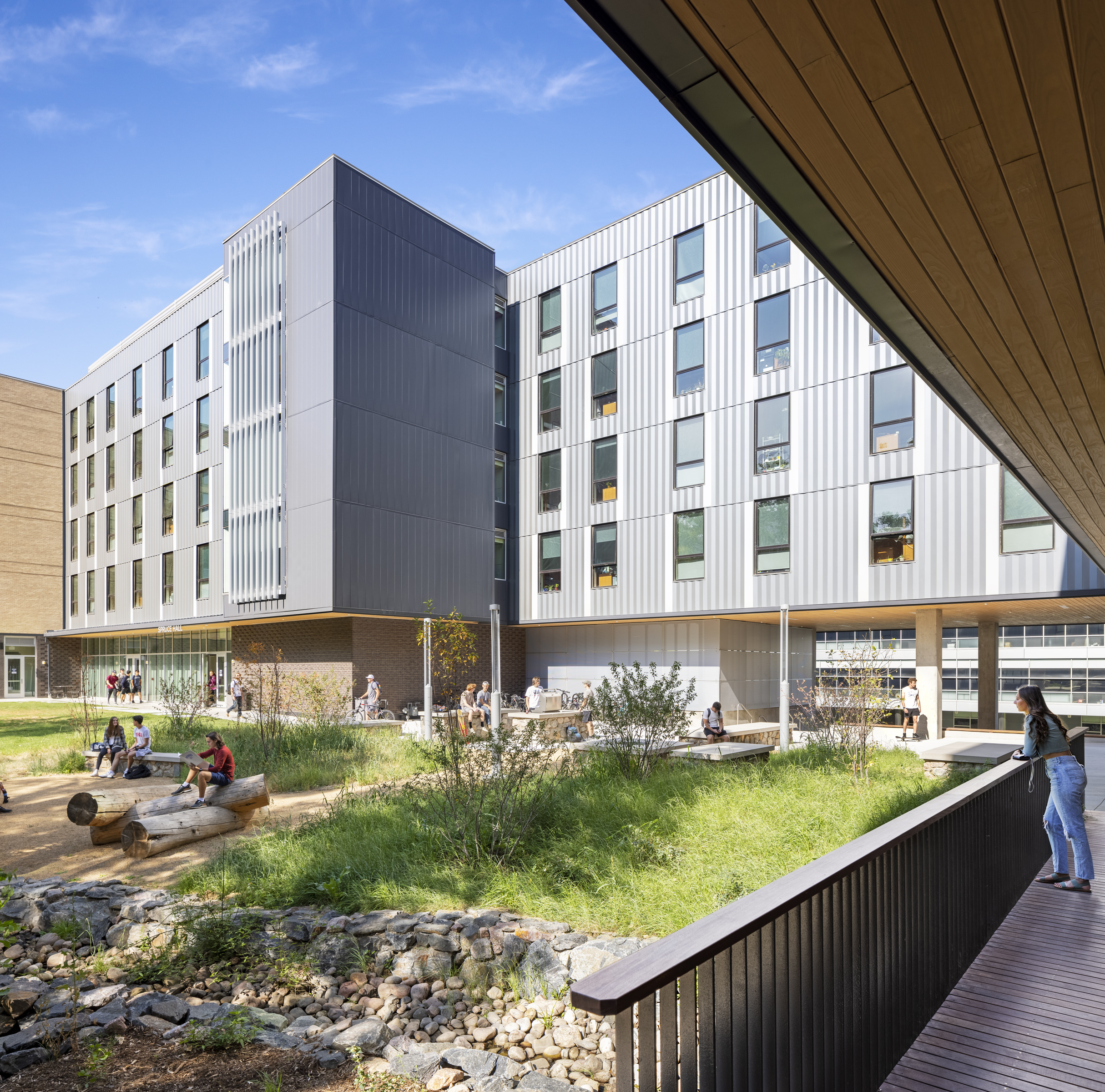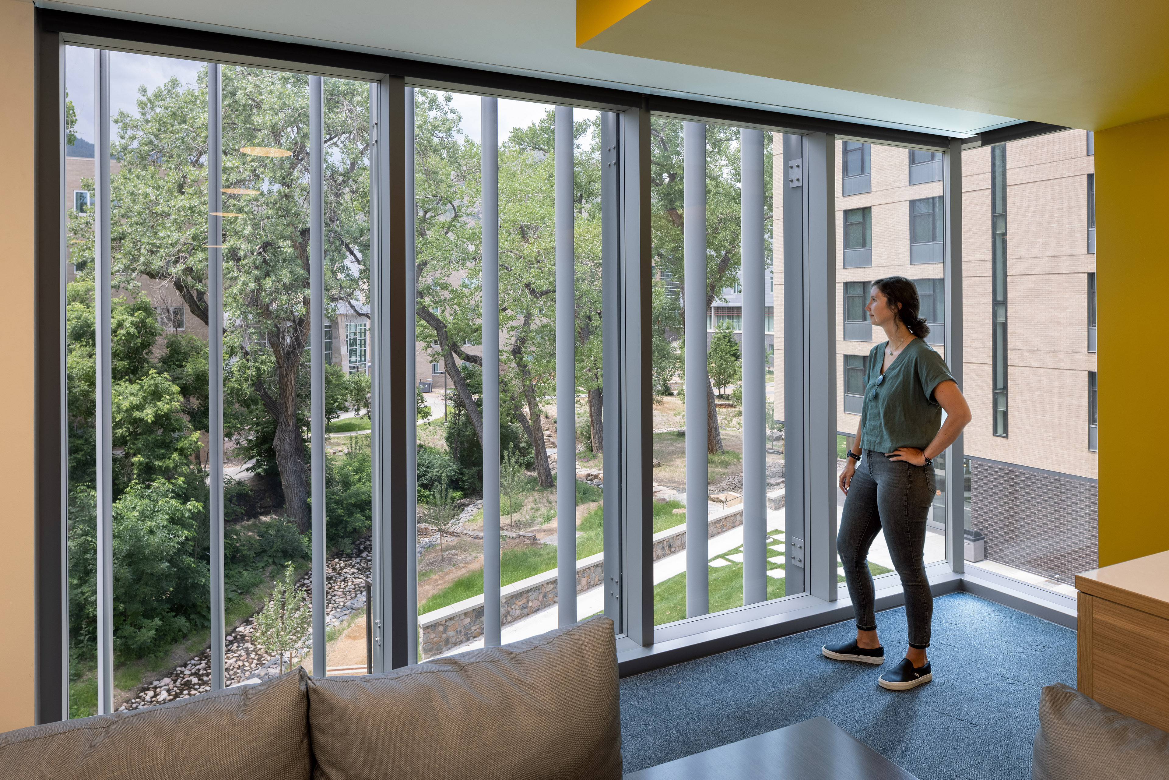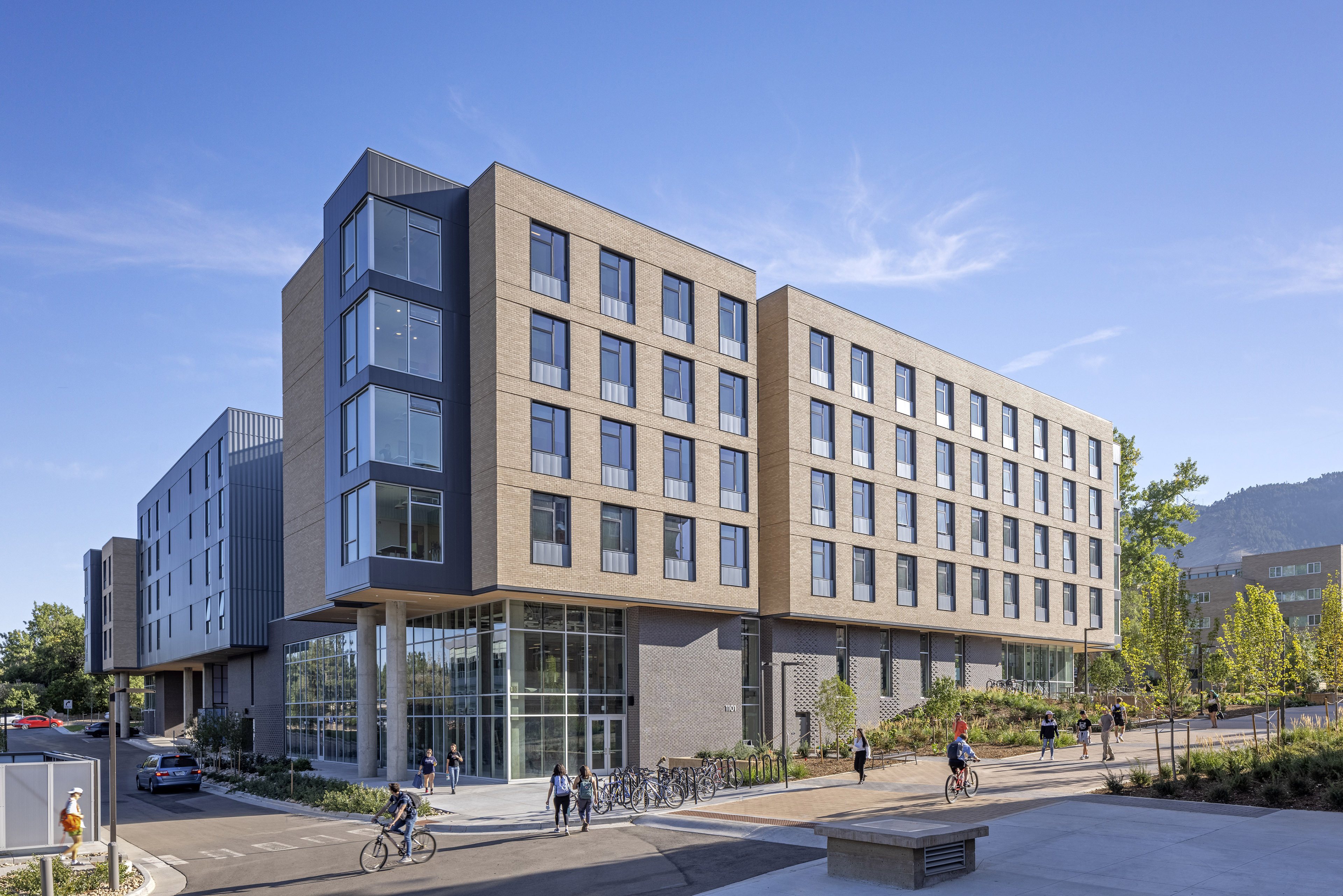 Spruce Hall is a new freshman residence facility for 420 students on the Colorado School of Mines campus in Golden, Colorado. The hall initiates the first phase of a major student housing master plan developed by NAC Architecture and AMD Architects for the nationally acclaimed engineering university. Built to conserve resources and lessen environmental impact, the hall is a sustainable structure that is on target for LEED (Leadership in Energy and Environmental Design) Gold certification. The building is also unique in that it is specifically designed to address the school’s STEM culture by meeting the needs of introverted students.